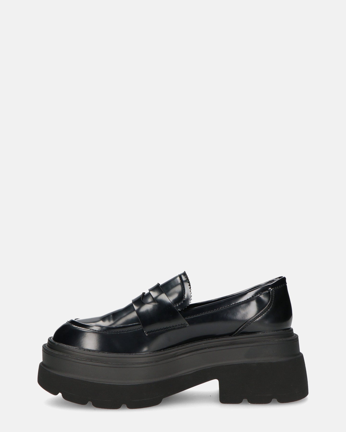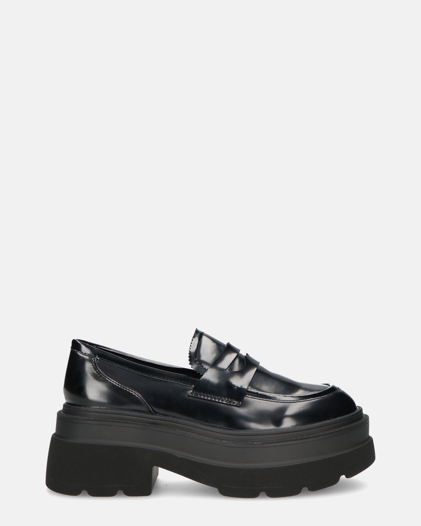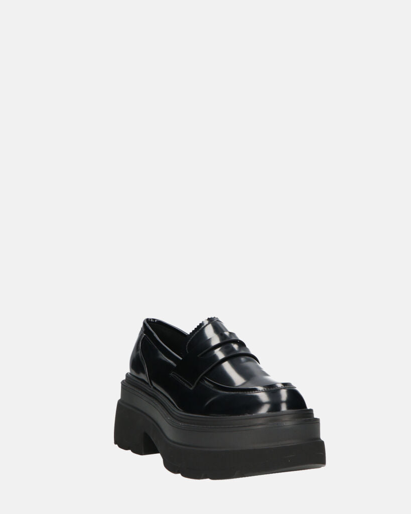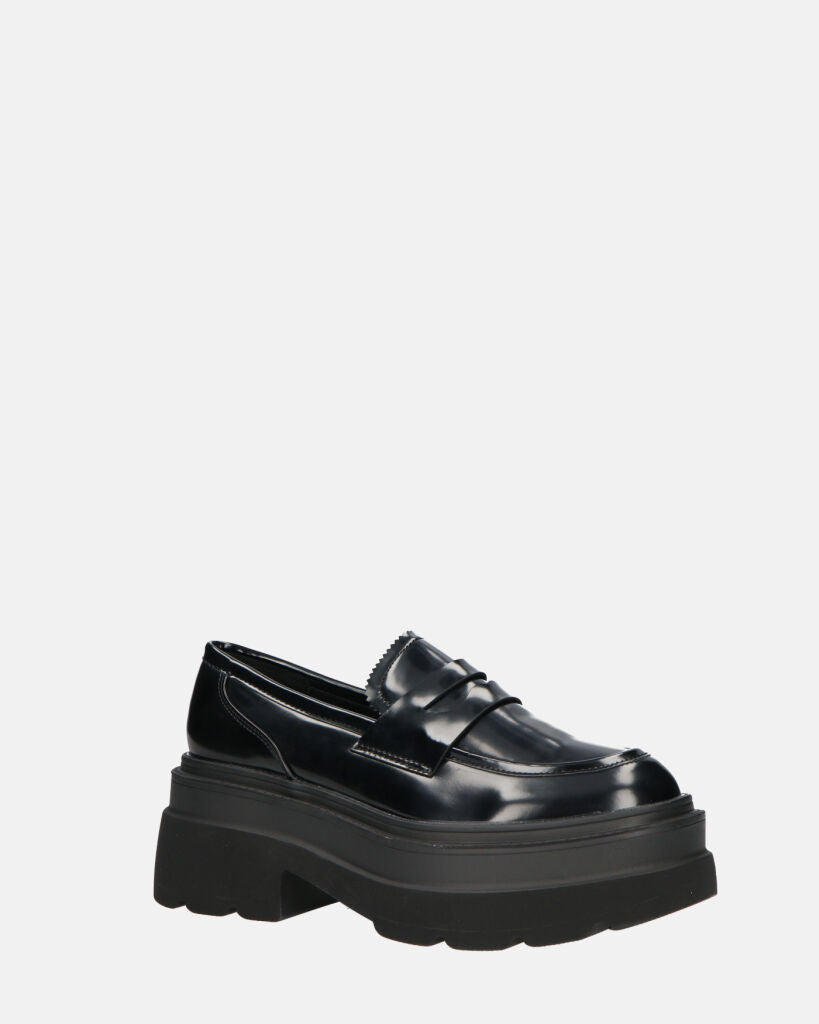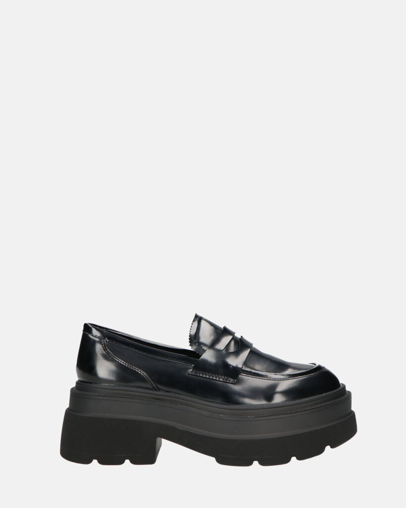 BICE | Czarne Mokasyny na Platformie łączą ponadczasowy design z komfortem, idealnym do codziennego użytku. Okrągły czubek i lekka podeszwa zapewniają stabilność oraz miękki krok, co czyni je idealnymi na długie dni. Starannie wykończone i wykonane z materiałów wysokiej jakości, które podnoszą każdy wygląd, od casualowego po elegancki.