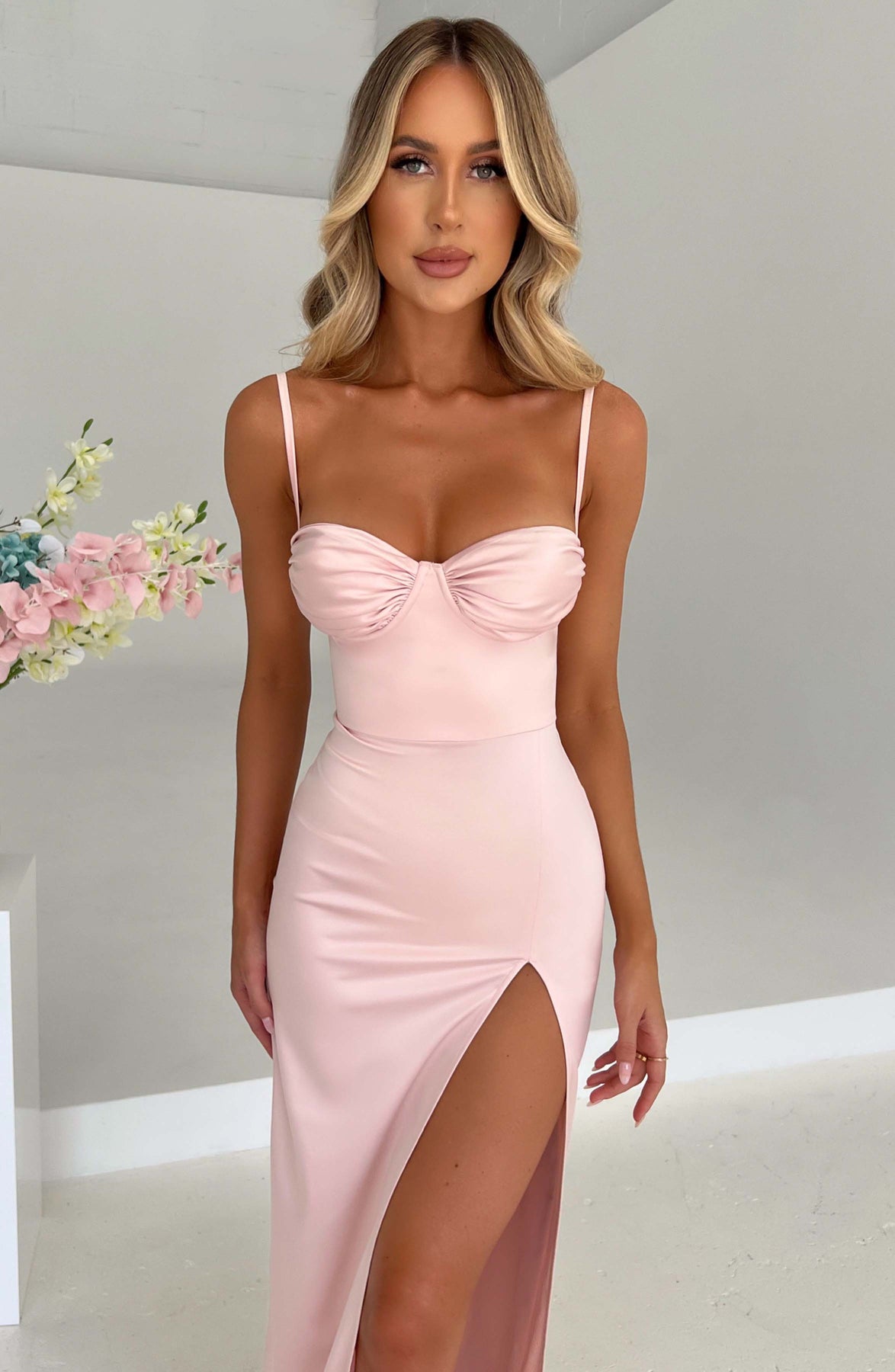 Celestelle | Luksusowa Sukienka Maxi z Satyny z Rozcięciem i Marszczeniami