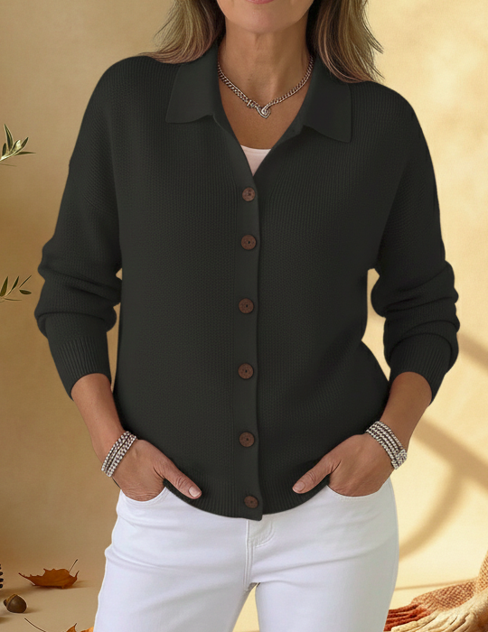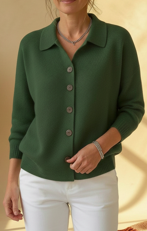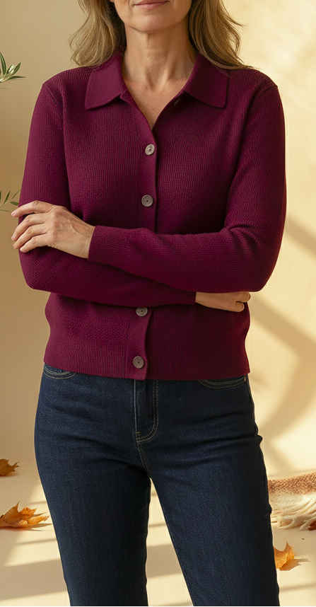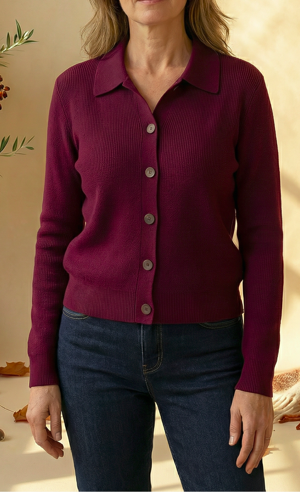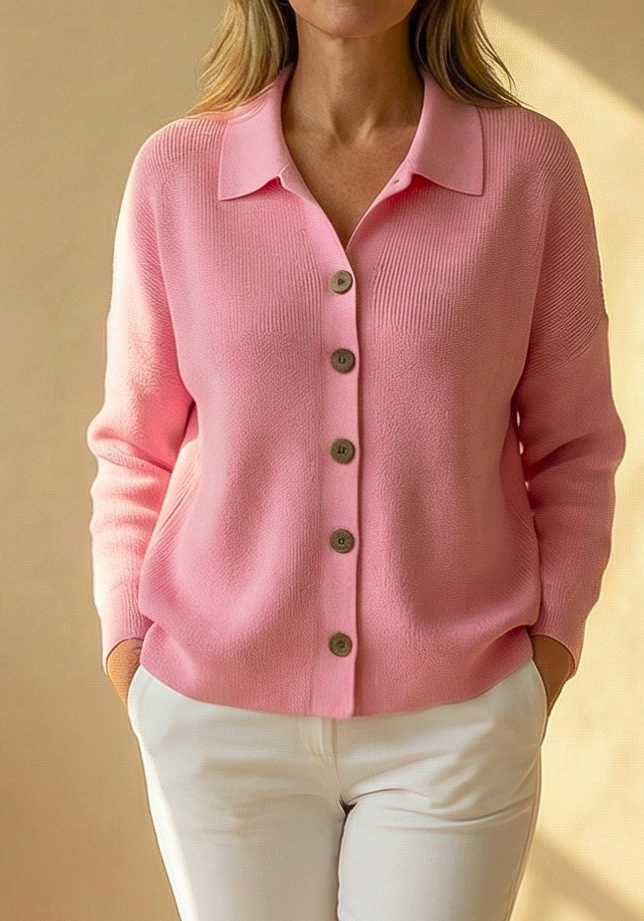 Bluzka Mila wykonana jest z miękkiej, delikatnej dzianiny, która przyjemnie otula skórę. Kołnierz i pełne zapięcie nadają modelowi schludny, ponadczasowy wygląd. Guziki stanowią ciepły akcent, który doskonale pasuje do świeżego koloru. Fason jest lekko luźny, co sprawia, że bluzka jest wygodna w noszeniu, nie tracąc przy tym formy.